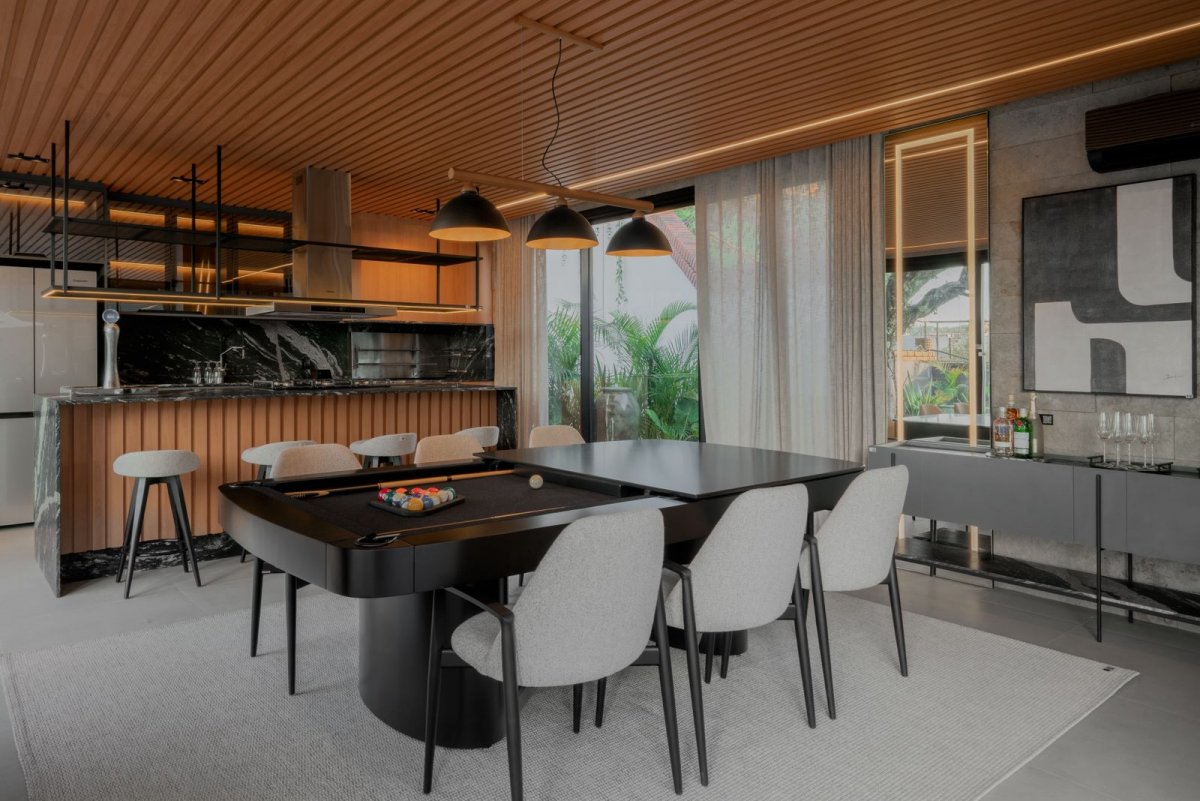 Esse equilíbrio resulta em um ambiente que valoriza tanto o uso cotidiano quanto a experiência sensorial, criando um espaço acolhedor, sofisticado e memorável.