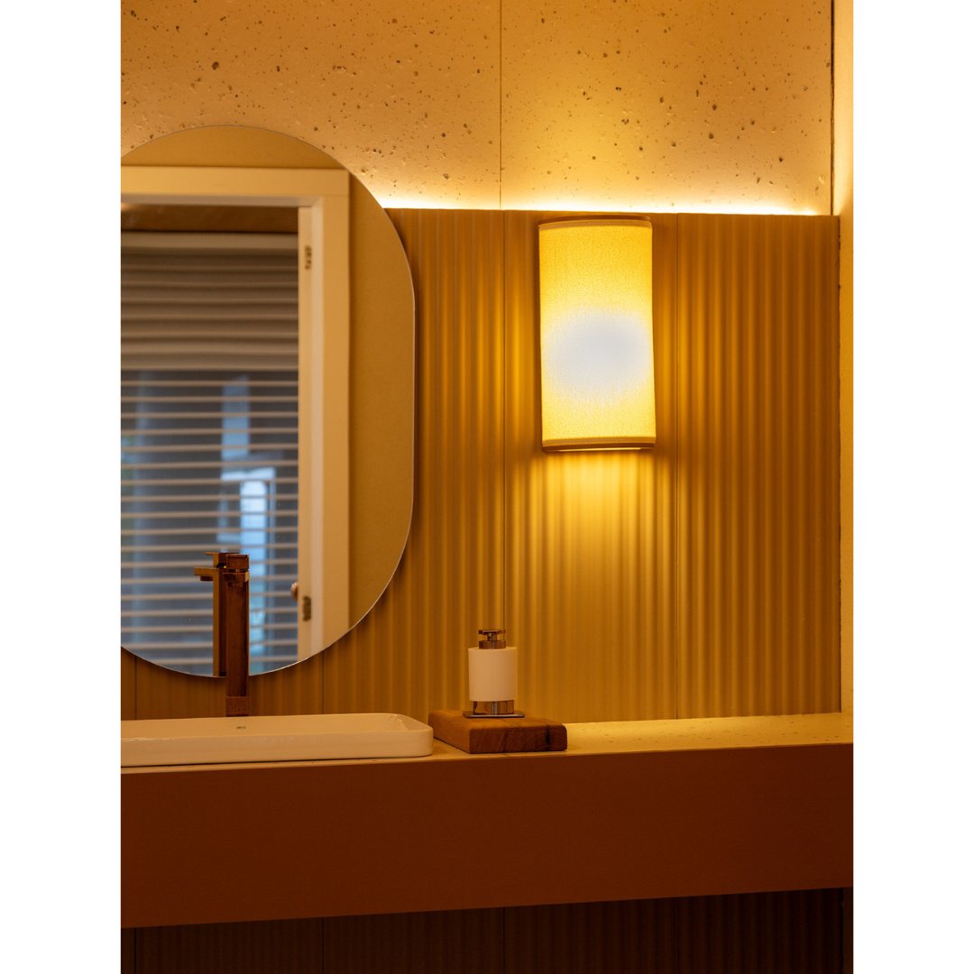 Luminárias feitas a mão com tecido de tela sintética, trazendo elegância e harmonia.