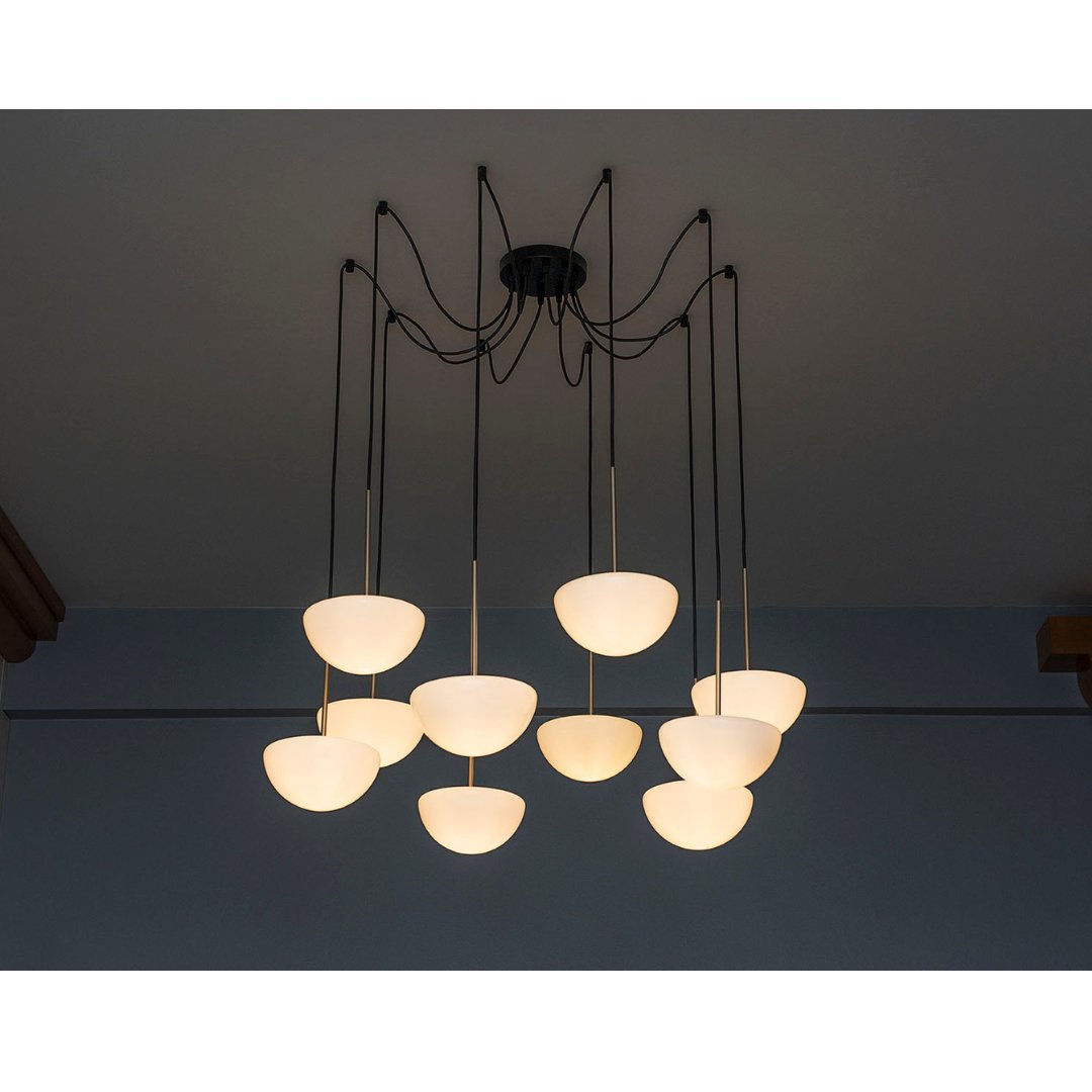 A Coleção Cogumelo é uma releitura do estilo Art Déco com detalhes contemporâneos. Possui vidro leitoso triplex (três camadas sobrepostas feitas de forma artesanal) gerando conforto, sem abrir mão do estilo.