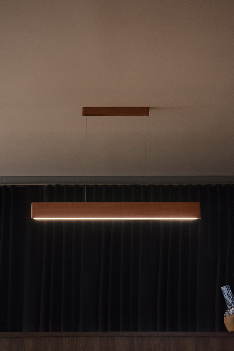 Revela a nobreza da madeira em linhas suaves e proporções equilibradas.
