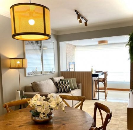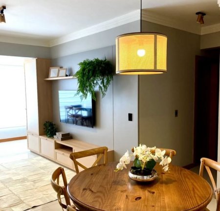 Esse projeto traz uma atmosfera acolhedora e elegante, com integração entre os ambientes e uso de cores neutras que transmitem leveza. A madeira aquece o espaço, enquanto a iluminação em diferentes pontos valoriza cada detalhe: o pendente de palha e madeira traz charme à mesa de jantar, os spots no trilho oferecem praticidade e a luz difusa da luminária de piso cria um clima intimista. A proposta é de um espaço contemporâneo, mas com atmosfera intimista, ideal para receber amigos e familiares ou para momentos de relaxamento.